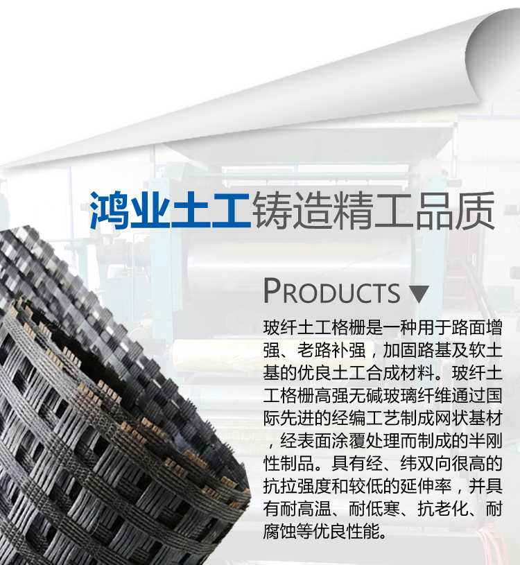 產(chǎn)品有強度高、伸長率低、耐高溫、模量高、重量輕、韌性好、耐腐蝕、壽命長等特點,可廣泛應(yīng)用于舊的水泥路面、機場跑道的維修、堤壩、河岸、邊坡防護、道橋路面增強處理等工程領(lǐng)域,可給路面增強、補強,防止路面車轍疲勞裂紋,熱冷伸縮裂紋和下面的反射裂紋,并能將路面承載應(yīng)力分散,延長路面使用壽命,高抗拉強度低延伸率,無長期蠕變,物理化學(xué)穩(wěn)定性好,熱穩(wěn)定性好,抗疲勞開裂,耐高溫車轍,抗低溫縮裂,延緩減少反射裂縫。